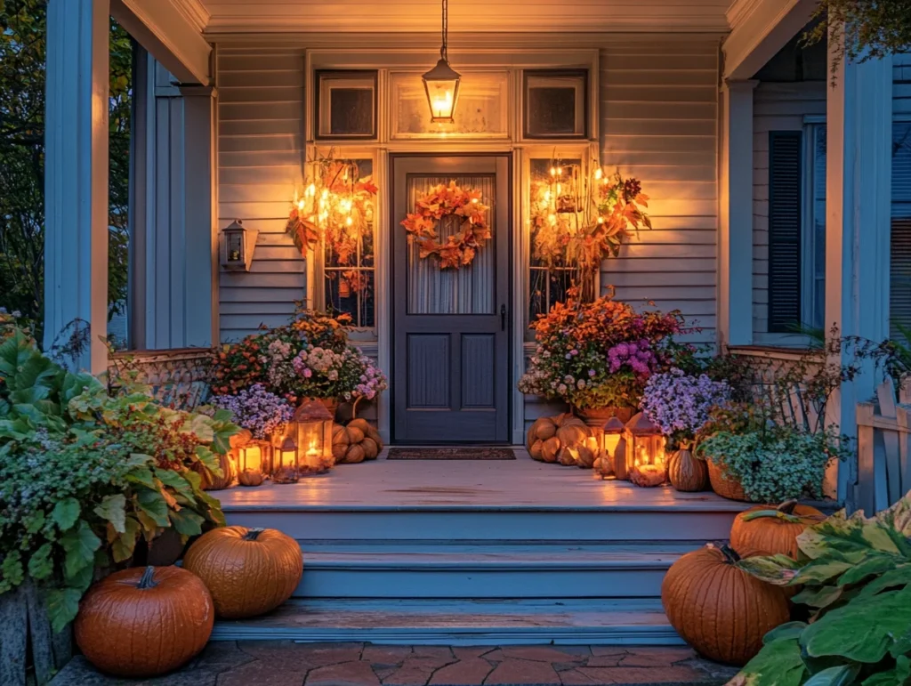 Pairing string lights with potted plants or hanging greenery creates a relaxing, natural vibe. It’s perfect if you want your porch to feel like a mini garden retreat.