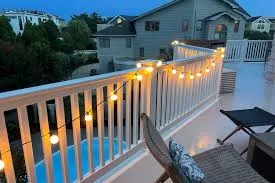 Keep it simple by placing string lights along railings or edges. This understated style works well for modern homes.