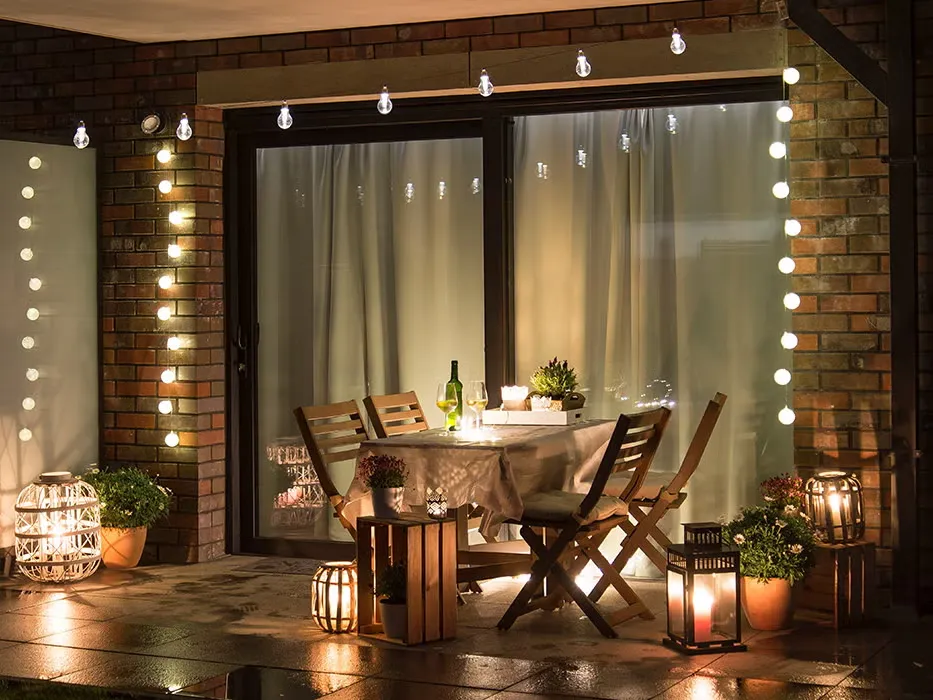 Combine string lights with lanterns or candles for layered lighting. This creates a warm, romantic atmosphere perfect for evenings.