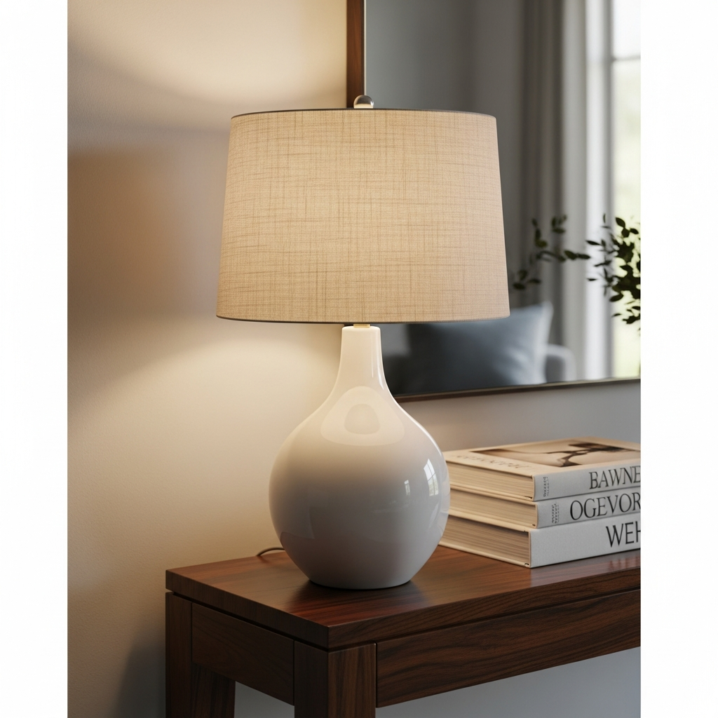 Even in the bright summer months, lighting is key for setting an evening mood. Choose a table lamp with a sculptural ceramic base in a matte white or soft terracotta finish. A linen lampshade will diffuse the light softly, mimicking the warm glow of a summer sunset. The organic shape of the lamp acts as a piece of functional art during the day, while the warm illumination creates a cozy, high-end ambiance as the sun goes down.