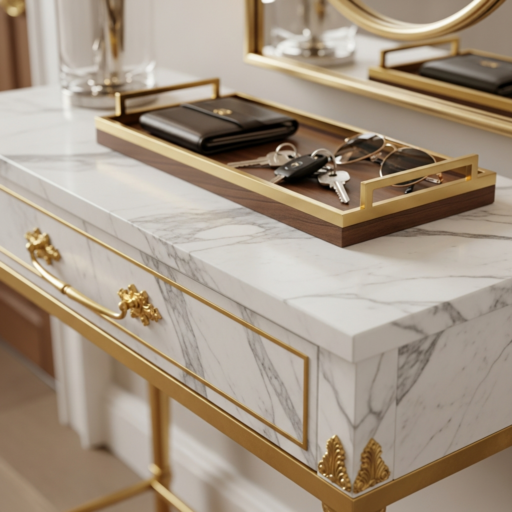 Marble brings a cool-to-the-touch luxury that is perfect for summer. A marble-topped console table or even a small marble tray for keys provides a sophisticated contrast to warmer materials like wood and wicker. The natural veining in the stone adds a layer of visual interest without the need for excessive color. Pair marble with gold or silver hardware to lean into a more formal, high-fashion entryway aesthetic that remains airy and bright.