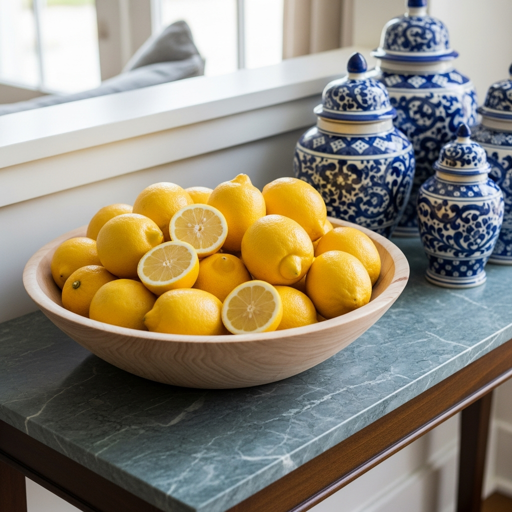 For an instant burst of seasonal energy, incorporate citrus as a decor element. A large wooden bowl filled with bright lemons or limes adds an organic splash of color that feels both fresh and sophisticated. This palette of zesty yellow and lime green pairs exceptionally well with blue and white ceramics. The scent is subtly invigorating, and the visual impact is a classic nod to Mediterranean summer style that feels timeless and chic.