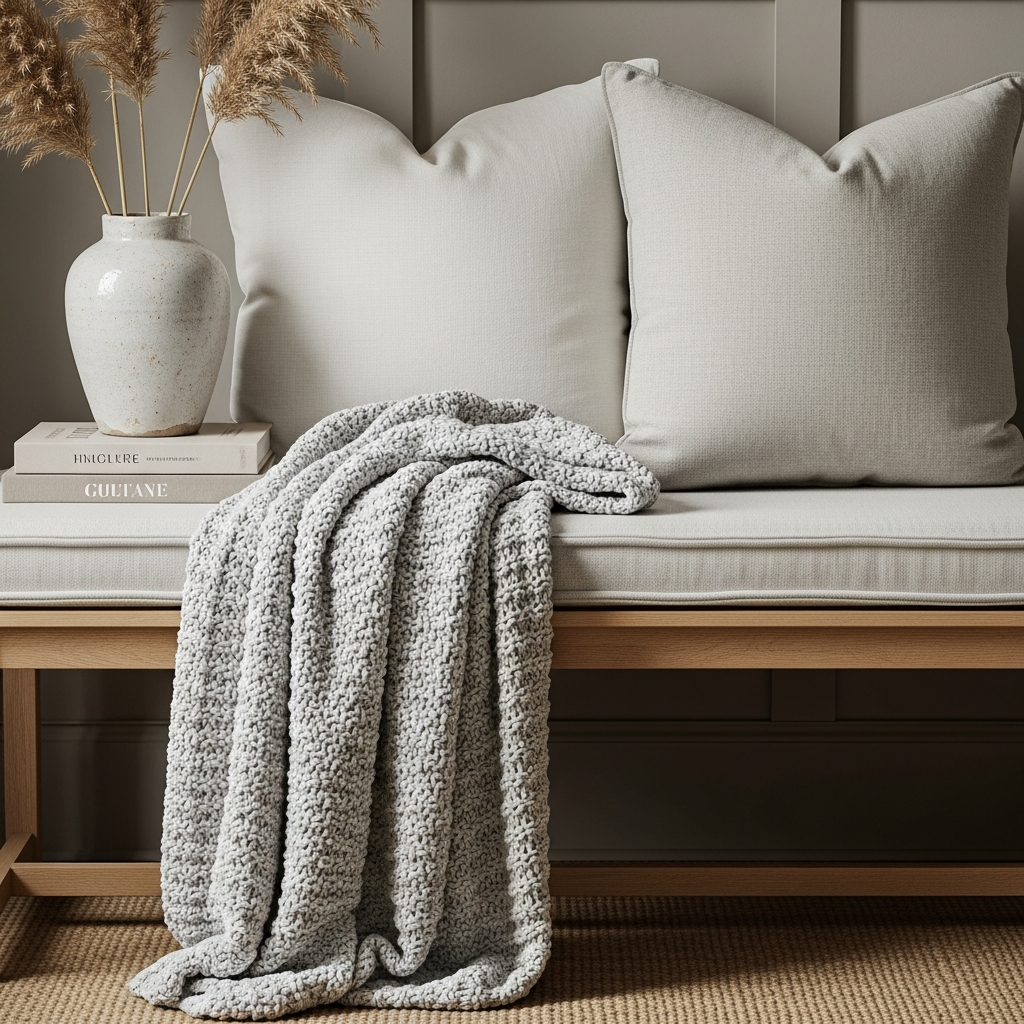 Swap out heavy velvet pillows or dark runners for the lightweight elegance of linen. A soft, oatmeal-colored linen runner draped over a bench or console brings a sense of softness and movement. Linen’s inherent breathability and slightly wrinkled texture evoke a coastal, lived-in luxury. Stick to a palette of whites, soft greys, and muted sands to keep the visual weight of the room light and effortless.