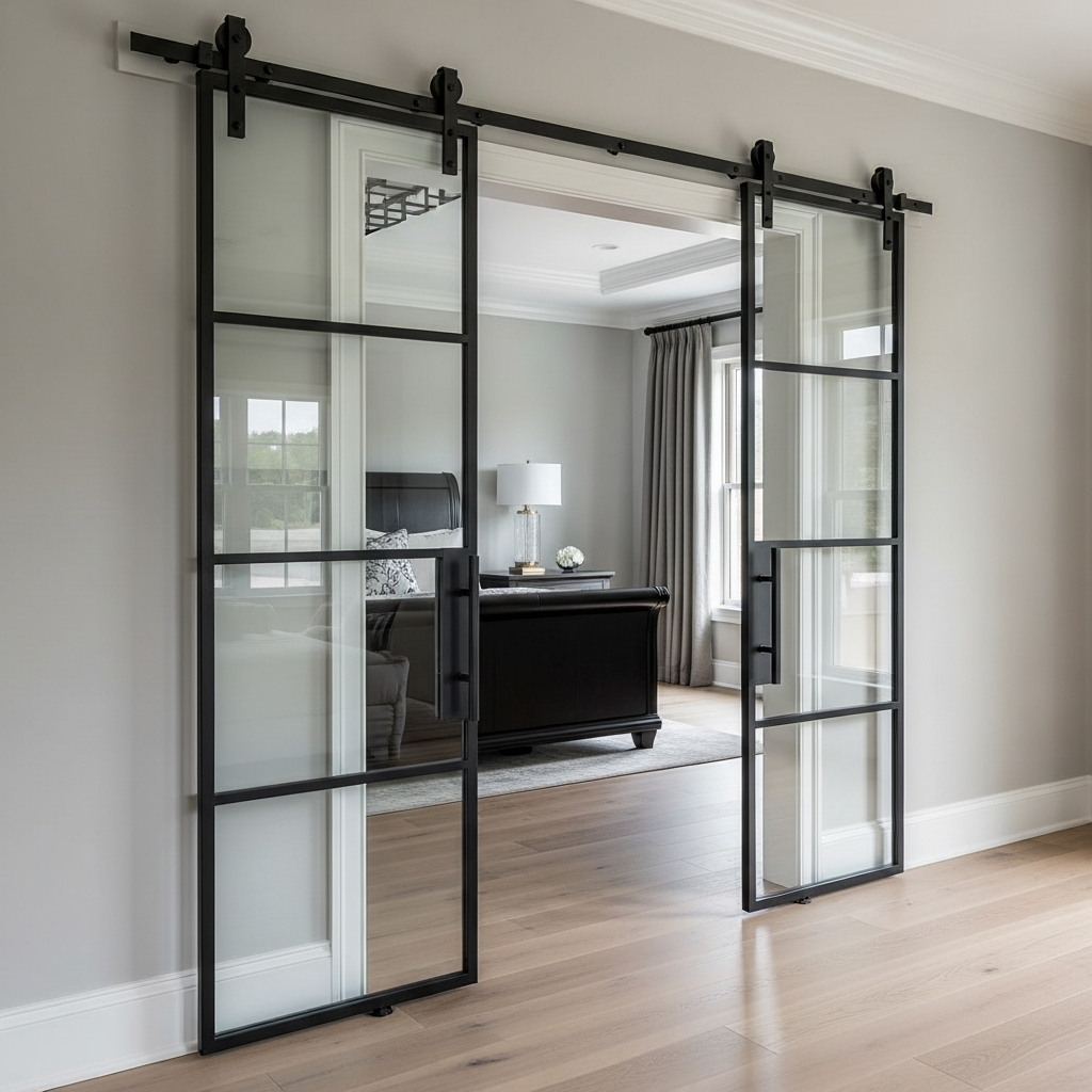 The sliding barn door has been reimagined with sleeker lines and glass inserts. Instead of heavy, solid wood, modern versions often use black steel frames with frosted or clear glass panes. This allows light to travel between rooms while still providing the space-saving benefits of a sliding door. It is a more architectural approach that fits perfectly in a home that blends industrial and farmhouse elements.