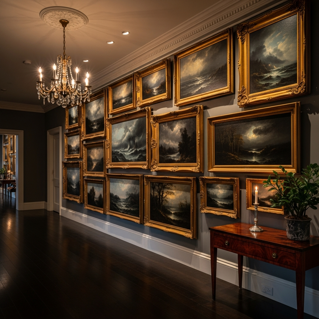 The new farmhouse gallery wall is less about quirky signs and more about fine art. Homeowners are choosing antique oil paintings, moody landscapes, and abstract sketches in mismatched gold and wood frames. This trend adds a layer of soulful sophistication. By mixing different mediums and frame styles, you create a wall that tells a personal story and feels like a collection gathered over many years of travel and living.