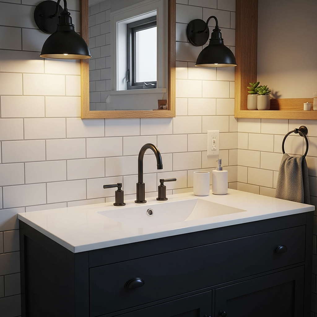 For a touch of modern contrast, matte black hardware is the leading choice. From kitchen faucets and cabinet pulls to window frames and lighting fixtures, black accents provide a sharp visual anchor against light-colored backgrounds. This trend adds a graphic, contemporary edge to the farmhouse aesthetic, ensuring the look remains fresh and current. It is particularly effective when used in lighting, where thin black metal lines create a sculptural silhouette.