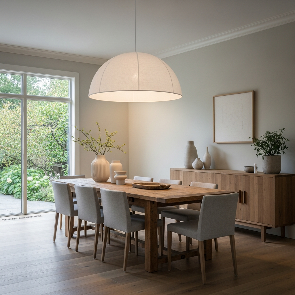 Lighting has become the jewelry of the farmhouse home. This year, we are seeing oversized, sculptural pendants made of natural materials like linen, wood beads, or blown glass. These fixtures act as the centerpiece of a room, drawing the eye upward and defining the space. Large-scale lanterns and dome-shaped pendants in matte finishes are particularly popular for over-island and dining table placement.