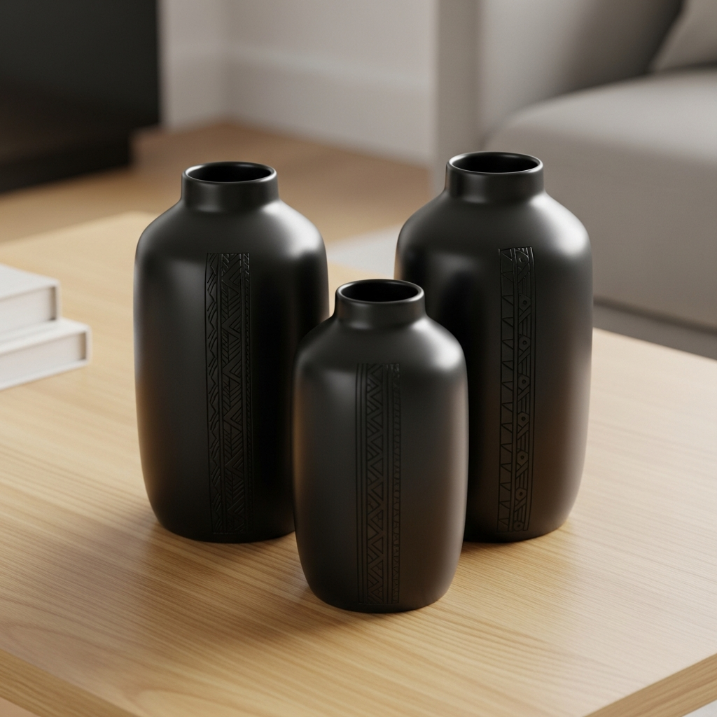 Inspired by the blackened pottery traditions of various African regions, matte black ceramics are a major trend this spring. These vessels often feature rounded, full-bodied shapes and subtle etched patterns. They provide a sophisticated, moody contrast to the lighter colors of spring. Place a cluster of hand-built clay vases on a mantel or coffee table to add a touch of modern elegance and structural interest.