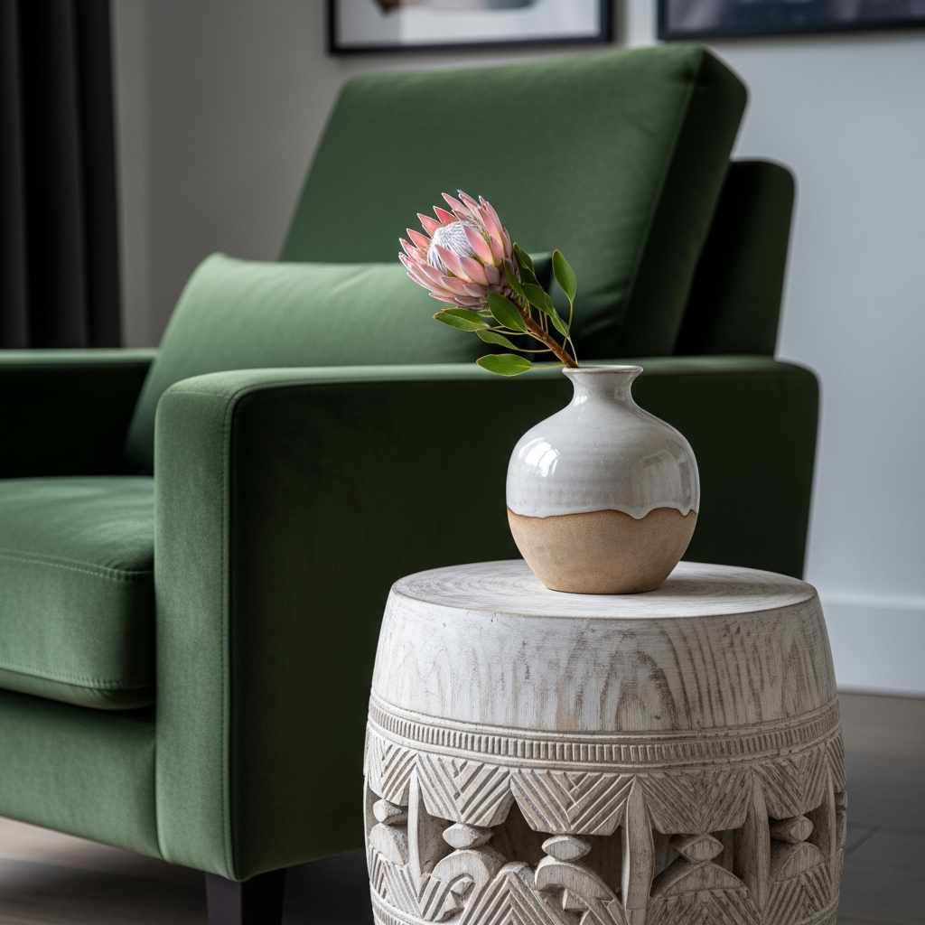 No spring decor update is complete without greenery. This year, the focus is on South African flora, particularly the King Protea. With its oversized, architectural bloom, the Protea serves as a stunning centerpiece. Complement these blooms with hardy indoor plants like the Fiddle Leaf Fig or Strelitzia (Bird of Paradise) to create an indoor jungle that feels lush, vibrant, and distinctly inspired by the African landscape.