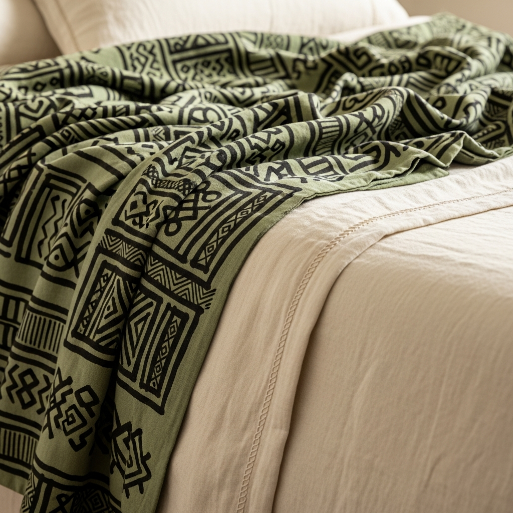 Traditional Malian mudcloth, or bogolanfini, is traditionally known for its bold black and white geometric patterns. For spring, designers are introducing softer interpretations in sage green, dusty rose, and sand. These textiles bring a sense of history and hand-applied art to the home. Use mudcloth as a runner at the foot of the bed or as oversized floor cushions to introduce pattern without overwhelming a serene bedroom palette.