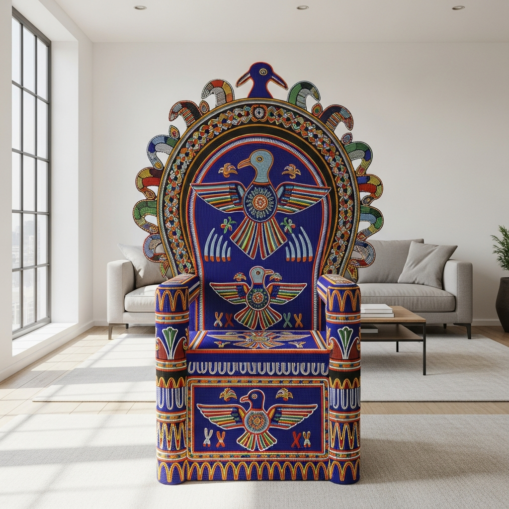 For those looking to make a true luxury statement, beaded chairs from the Yoruba people of Nigeria are the ultimate fusion of art and furniture. Thousands of tiny glass beads are applied by hand to create vibrant, intricate motifs. In a modern setting, one of these chairs acts as a functional sculpture, injecting a burst of color and a high-fashion edge into an otherwise neutral room.