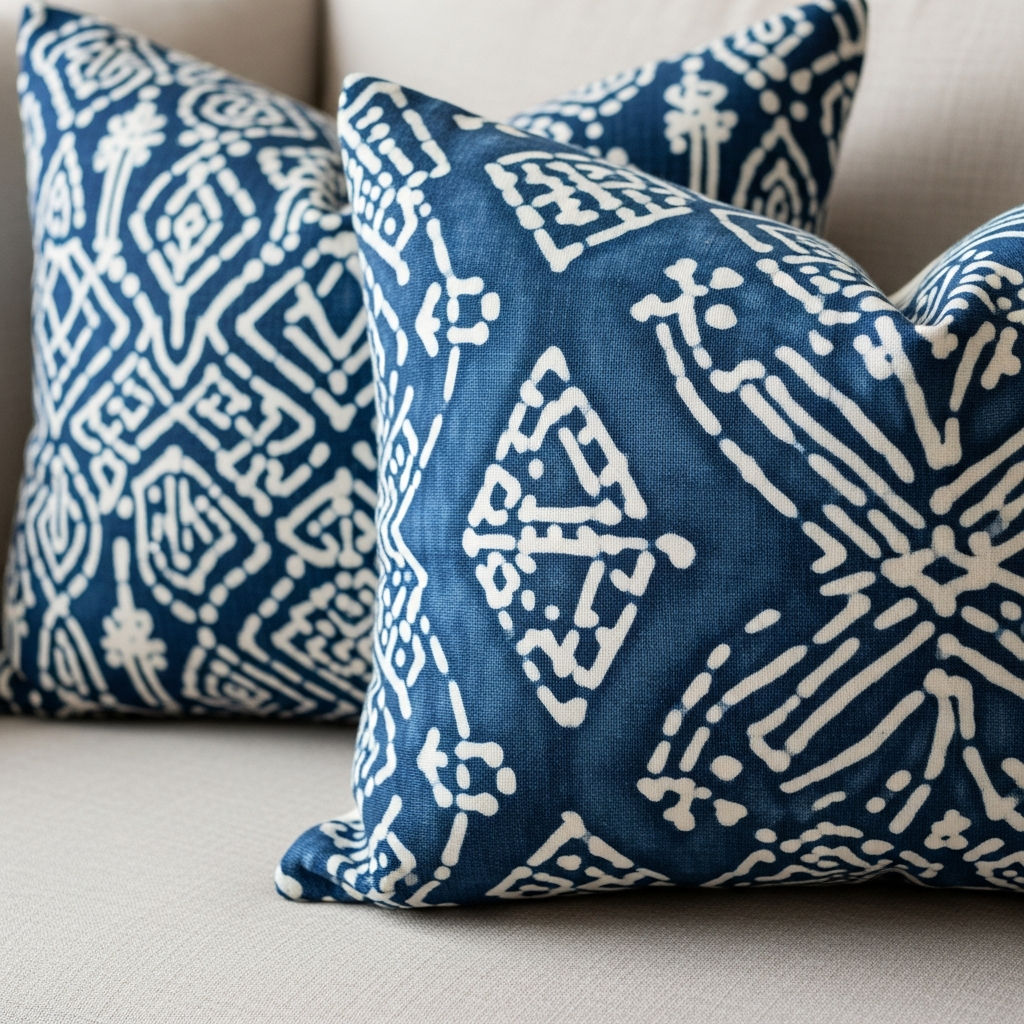 The deep, soulful blue of African indigo batik brings a sense of calm and sophistication to spring interiors. This traditional dyeing technique creates unique, fluid patterns that look stunning on throw pillows, napkins, or even framed as textile art. The contrast between the rich blue and white cotton feels crisp and clean, making it an ideal choice for a living room refresh that feels both traditional and trend-forward.