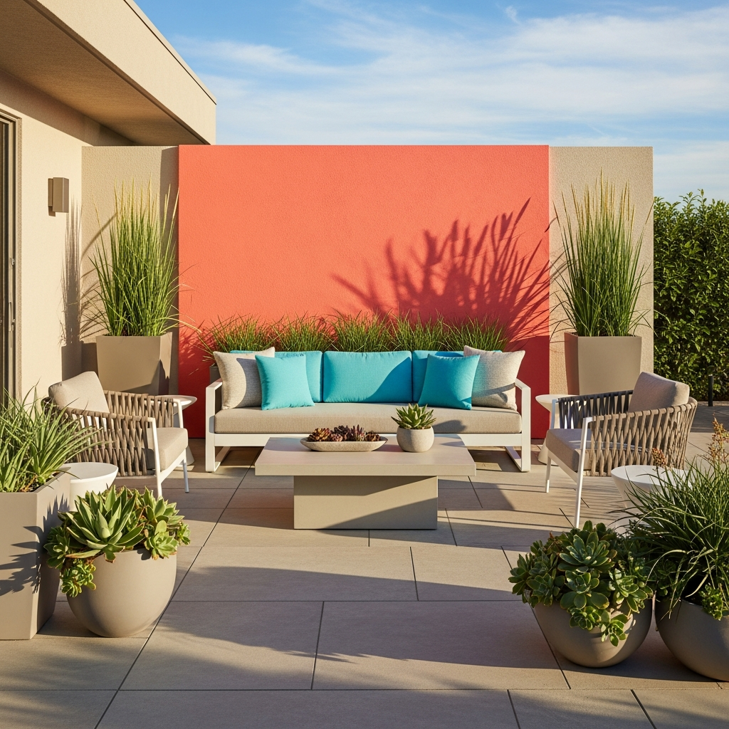 Extend color blocking to your outdoor spaces with coral and turquoise. Use turquoise for your outdoor sofa cushions and pair them with a coral-painted accent wall on the patio. These vibrant colors stand out beautifully against green foliage and blue skies. Use weather-resistant materials like powder-coated aluminum and synthetic wicker to ensure the colors remain bright season after season.