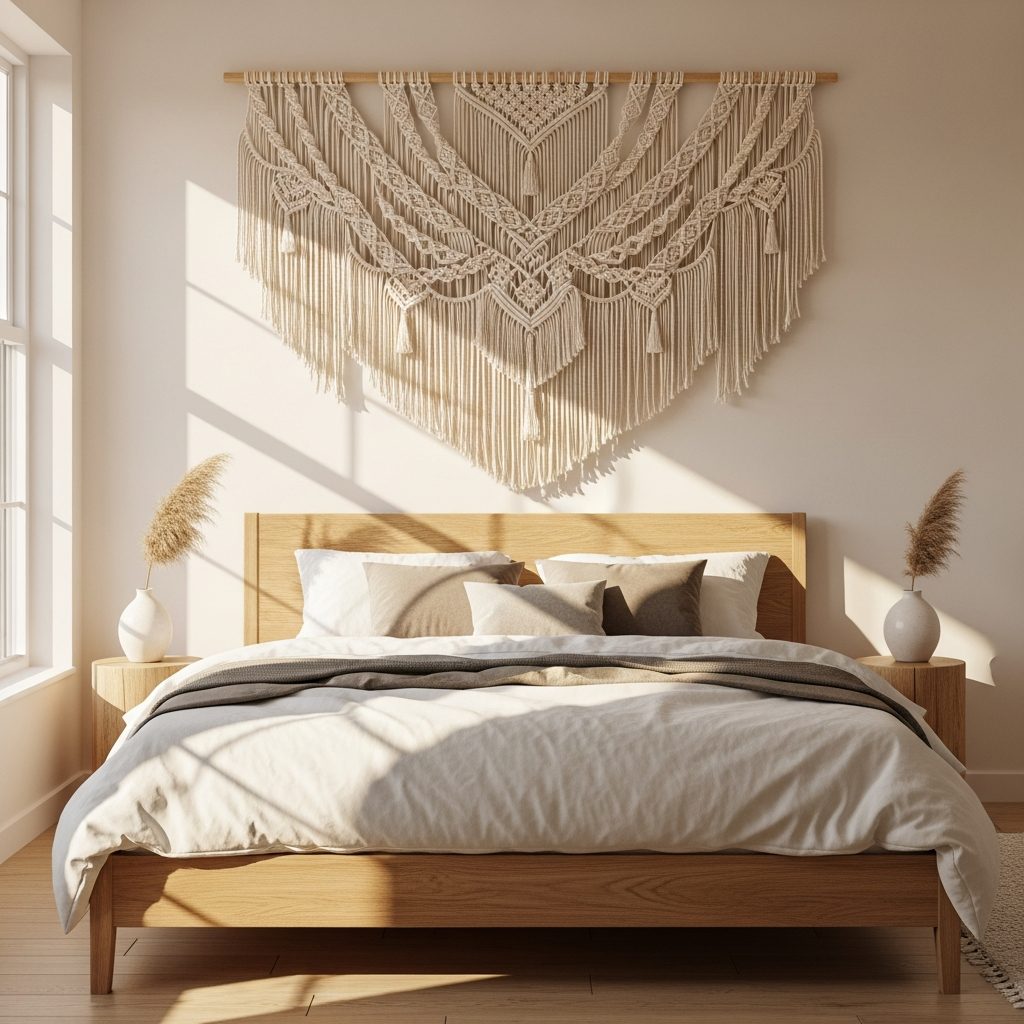 Nothing says bohemian quite like the tactile beauty of macrame. For spring, choose wall hangings made from bleached white or cream cotton cords to keep the walls looking bright. These pieces add a sense of handcrafted artistry and soft texture that breaks up the flat surface of your walls. Look for designs that incorporate wooden dowels or driftwood to further emphasize the connection to nature and the effortless style of the season.