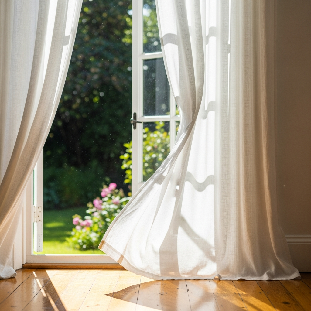 In spring, the goal is to let in as much natural light as possible. Replace heavy, light-blocking curtains with sheer white linen or cotton voile panels. These fabrics catch the breeze and diffuse the sunlight, filling the room with a soft, ethereal glow. The gentle movement of sheer curtains adds a romantic, airy quality that defines the bohemian spring aesthetic and makes the interior feel connected to the outdoors.