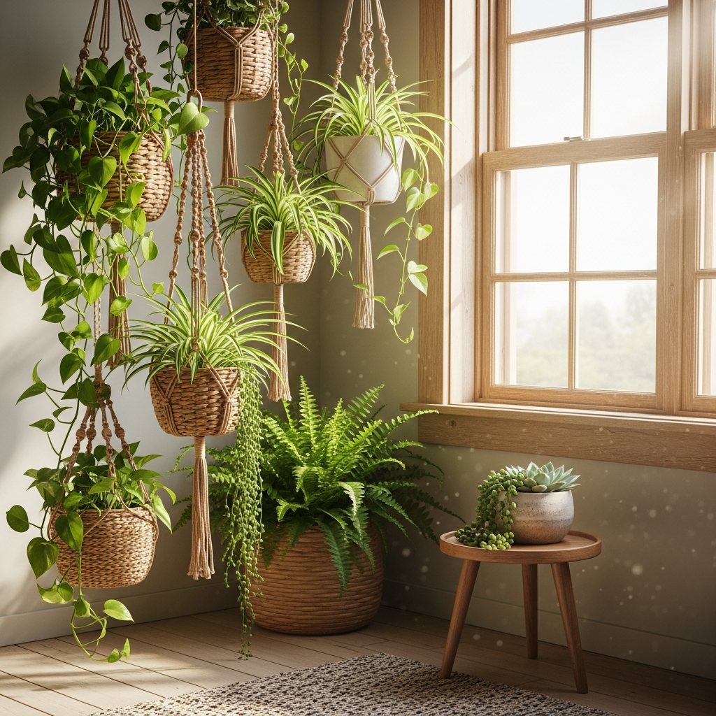 Spring is synonymous with growth, making it the perfect time to expand your indoor plant collection. Use macrame plant hangers to suspend trailing vines like Pothos or String of Pearls from the ceiling at varying heights. This vertical greenery draws the eye upward and makes the room feel alive. Use woven seagrass baskets as planters to add a layer of rustic warmth and to hide standard plastic nursery pots.