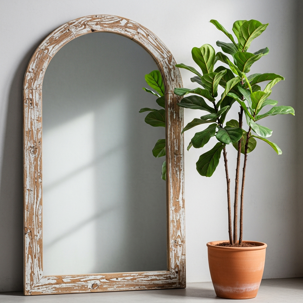 Mirrors are a designer’s secret for making a space feel larger and brighter. To fit the boho style, look for mirrors with vintage wooden frames or slightly distressed finishes. A large floor mirror with a carved frame can reflect the greenery of your indoor plants and the soft spring light, doubling the visual impact of your decor. The ‘lived-in’ look of a distressed mirror adds history and character to a modern bohemian home.