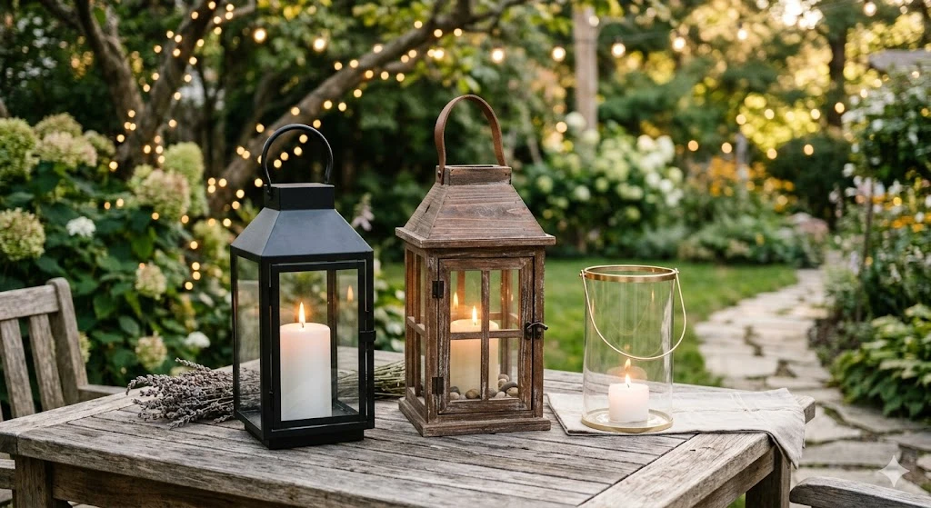 - Metal lanterns → modern or industrial vibe